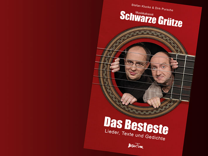 Seit 25 Jahren begeistern Stefan Klucke und Dirk Pursche mit ihrem einzigartigen Mix aus literarischem Wortspiel und Schwarzem Humor als Musikkabarett „Schwarze Grütze“ ihr Publikum. Mittlerweile haben auch viele namhafte Bühnen die Qualität Ihrer Lieder erkannt, und führen immer wieder die Songs des Duos mit großem Erfolg in ihren Programmen auf. Nun hat der Buschfunk-Verlag die schönsten, bekanntesten und lustigsten Lieder der Schwarzen Grütze in einem Liederbuch herausgegeben. Endlich können die Kinder unter dem Weihnachtsbaum aus dem Notenbuch singen: „Ich habe einen Weihnachtsmann erschossen…“